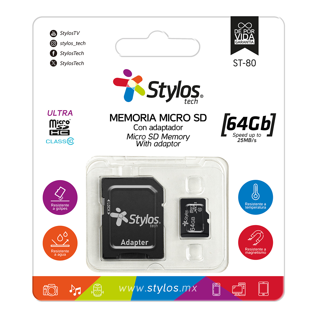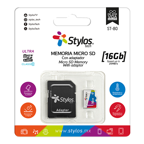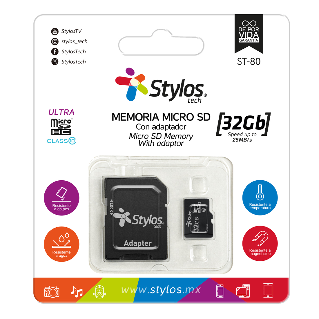Con tu memoria TFT de Stylos podrás guardar los archivos que quieras, no te quedes sin espacio en tus dispositivos, compra una memoria TFT STYLOS